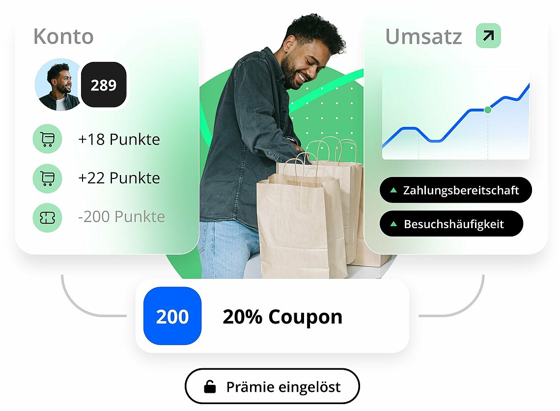 Um ihr Punktekonto weiter aufzufüllen, kaufen deine Kunden öfter bei dir ein.
